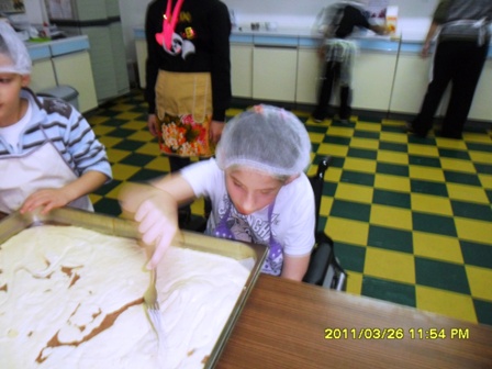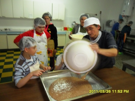 U petak, 31. listopada učenici su prva tri školska sata sudjelovali u projektu u okviru nastave njemačkog jezika „Heute kochen wir“. U školskoj kuhinji, uz nesebičnu pomoć 'tete kuharice' Željke Barić i uz prisustvo predmetne nastavnice, su učenici Antonio Mikičić (1.a), Mijo Brčina (4.r), Aleksandar Grčić (4.r), Sanja Vukičević (5.r), Franjo Brčina (7.r), Aleksandar-Saša Drenovac (7.r) i Zorica Pribičević (8.r) napravili mramorni kolač koji je poslije bio serviran u blagovaonici kao desert za ostale učenike. Zahvaljujemo asistentici u nastavi gospođi Branki koja je fotografirala učenike tijekom aktivnosti. Recept i upute za pripremu kolača možete pročitati na našem plakatu, na njemačkom jeziku.