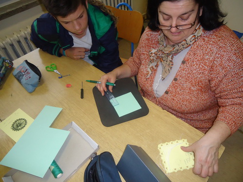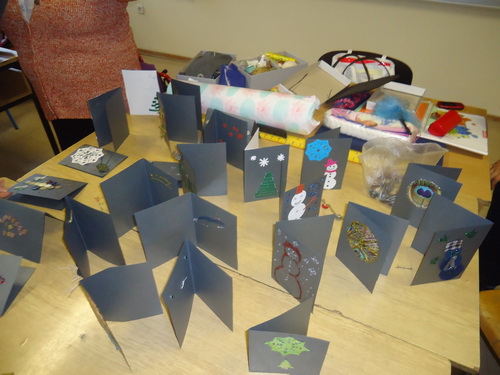 Na radionici smo izrađivali čestitke jer nam uskoro stižu božićni i novogodišnji praznici. Kreativne radionice su uvijek zanimljive, jer tu stvarno možemo naše ideje provesti u djelo. Posebno je bilo lijepo kad nas je nastavnica počastila sokom i kolačima. Imala sam osjećaj sa smo svi jedna velika, složna obitelj.