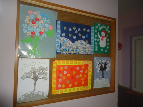 U školskom holu učiteljica Danica Brajenović, voditeljica likovne grupe, izložila je radove učenika - polaznika ove izvannastavne aktivnosti.