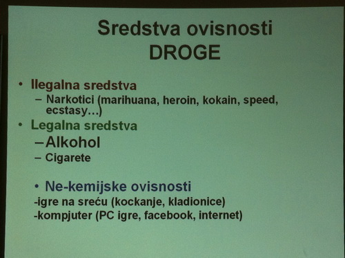 U tom projektu nam je pokazano da su alkohol i droga jako štetni za organizam, te da još osim ovisnosti o drogi i alkoholu mogu biti i ovisni o facebook-u, igricama , ... Projekt je bio jako koristan i zanimljiv.