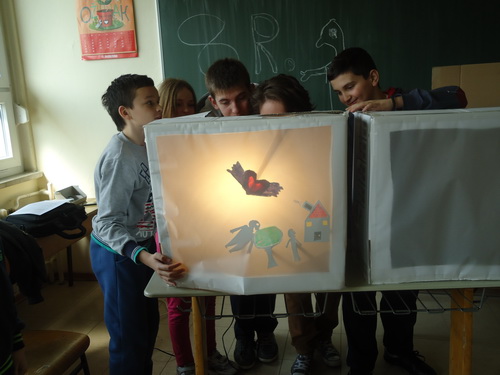 Dana 23.3.2015. održana je radionica teatra sjena. Bilo mi je lijepo i naučila sam da ne moramo imati velike stvari da bismo se zabavili. Mi smo svi mislili da je bitno imati igračke, ali i iz papira mogu nastati velike stvari. Mislili smo da papir služi samo da se na njemu piše, ali nakon radionice promijenila sam svoje mišljenje. Shvatila sam da od malo papira možemo napraviti čudo. I da se možemo jako zabaviti i bez velikih stvari.