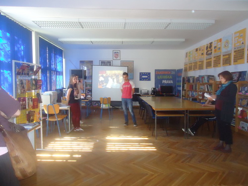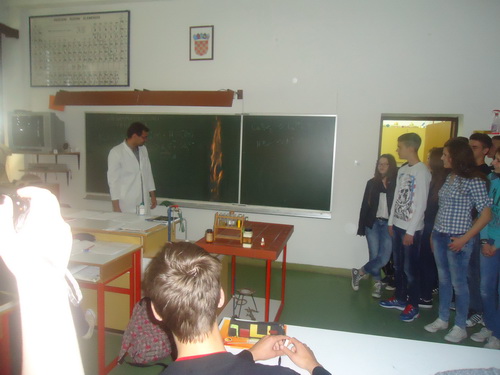 Kada smo ušli u školu odmah smo uočili razne učeničke radove i mnoštvo plakata. Ravnateljica i pedagoginja Srednje škole Ivana Trnskoga provele su nas kroz školu. Prvo smo posjetili školsku knjižnicu gdje su nas dočekali gimnazijalci koji su nam ispričali ukratko o sustavu školovanja u gimanziji. Poslije školske knjižnice posjetili smo informatički kabinet, a zatim i kabinet biologije i kemije gdje su nas ugodno dočekali, a profesor nam je izveo nekoliko pokusa koji su nas oduševili. Zatim smo posjetili ekonomski dio i krojače, te stolare koji su nam pokazali svoje eksponate od drveta i šumarske tehničare koji su nam objasnili nešto o svom zanimanju. S nama su u pratnji bile razrednica Josipa Antić i pedagoginja Stojanka Strineka.
