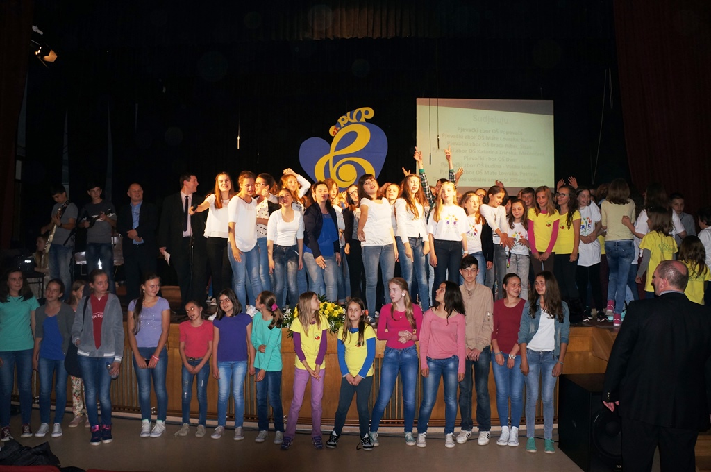 Susret se održao u Domu kulture Popovača s početkom u 19 sati. Uz nas su sudjelovali i zborovi OŠ Katarine Zrinske iz Mečenčana, zbor OŠ Popovača, zbor OŠ Mate Lovraka iz Kutine, zbor OŠ Braće Ribar iz Siska, zbor OŠ Ludina iz Velike Ludine, zbor OŠ Mate Lovraka iz Petrinje te ženski vokalni ansambl Sidone. Naš zbor izveo je pjesme Tri livade i Kišica. Na kraju programa svi zborovi zajedno otpjevali su pjesmu Daleke Obale Morska vila, te se nakon kraćeg domjenka i druženja uputili svojim kućama.