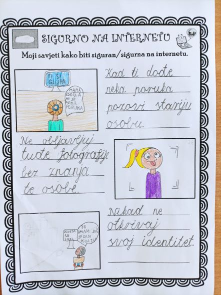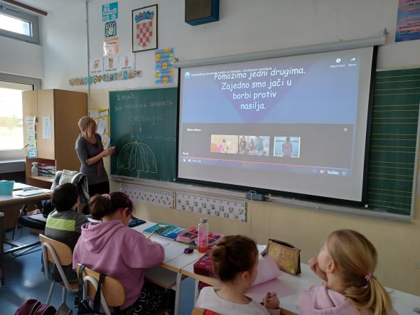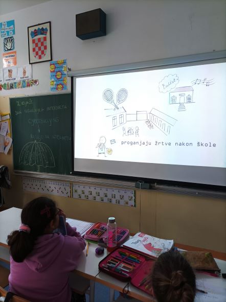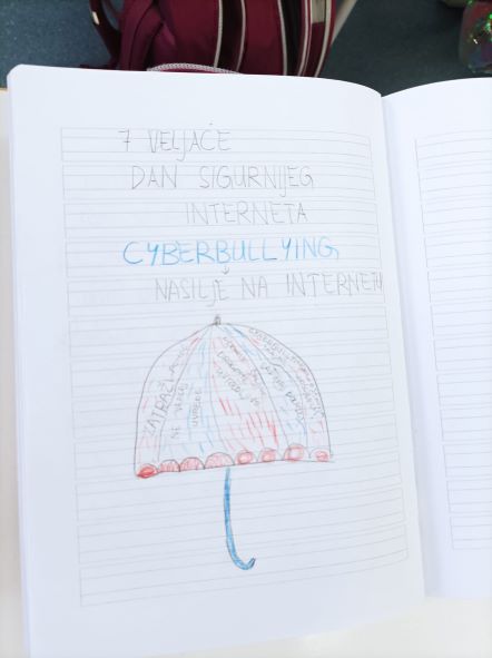 Učili smo o vrstama zlostavljanja, a osobito o elektroničkom zlostavljanju. Gledali smo videoisječke različitih vrsta nasilja na internetu i shvatili kako posljedice tog nasilja ostavljaju trajne posljedice na samopouzdanje djeteta. Naučili smo kako se zaštititi od nasilja na internetu i što učiniti ako do nasilja dođe. Izradili smo svoj kišobran nenasilja sa mnogim korisnim savjetima. Tijekom veljače izradit ćemo svoj digitalni bontončić.