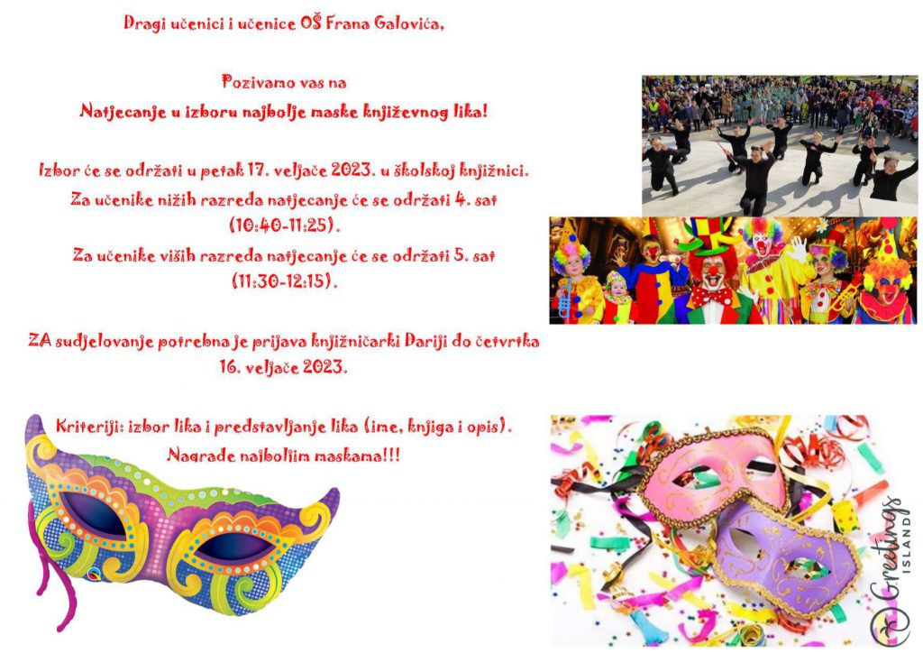 ovogodišnje maškare ćemo obilježiti Natjecanjem u izboru najbolje maske književnog lika.