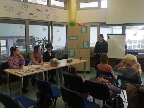 Učenici prvih razreda, kao i oni koji su dio produženog boravka obilježili su maškare zajedno s Valentinovom i Danom zagrljaja pod nazivnom Zaljubljene maškare.