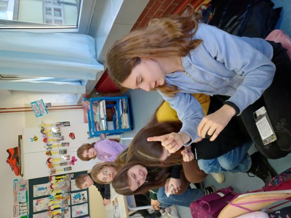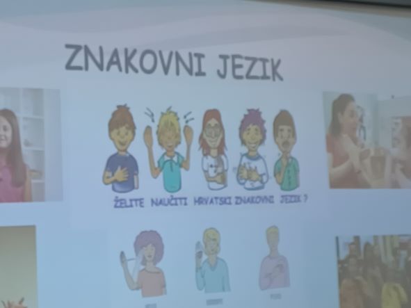U srijedu 14. ožujka 2023. naše učenike 2.a i 2.d razreda te predstavnike šestaša posjetila je Dijana Vincek, predsjednica udruge Hrvatski savez gluhih i nagluhih osoba s prevoditeljicom Nives. Održala je izvrsno predavanje i radionicu na temu Komunikacija s gluhim i nagluhim osobama, hrvatski znakovni jezik.