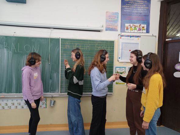Za sam kraj voditeljica nam je stavila slušalice na uši kako bismo na trenutak osjetili kako se osjeća gluha i nagluha osoba. Tada su nam prijatelji prenosili poruke znakovnim jezikom koje smo s uspjehom otkrili.