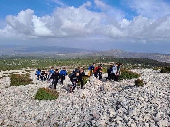 U subotu, 11. ožujka 2023. održao se izlet Planinarske grupe, Liturgijske skupine, Turističko geografske skupine i skupine Mladih povjesničara na otok Krk. Bio je to najdalji i najmasovniji (legendarnih 76 učenika/ica) izlet do sada. Osvojili su čak dva vrha – Veli vrh (542 m) i Obzovu (569 m), najviši vrh na otoku.