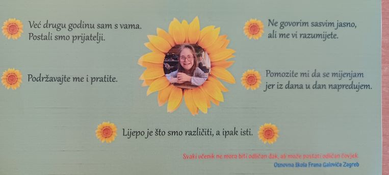 Naša prijateljica Una prijateljima je podijelila malu zahvalnicu za prijateljstvo i podršku koju joj prijatelji pružaju u njenom školovanju. Šarenim i veselim čarapicama koje smo danas odjenuli poručujemo kako osobama sa sindromom Down dajemo podršku.