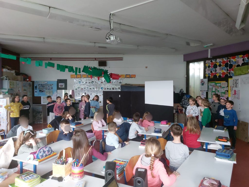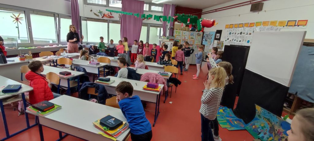 U ponedjeljak 3.4.2023. budući prvašići, zajedno sa svojim odgojiteljicama posjetili su našu školu. Dočekale su ih učenice šestog i osmog razreda koje su kroz kviz predstavile našu školu.