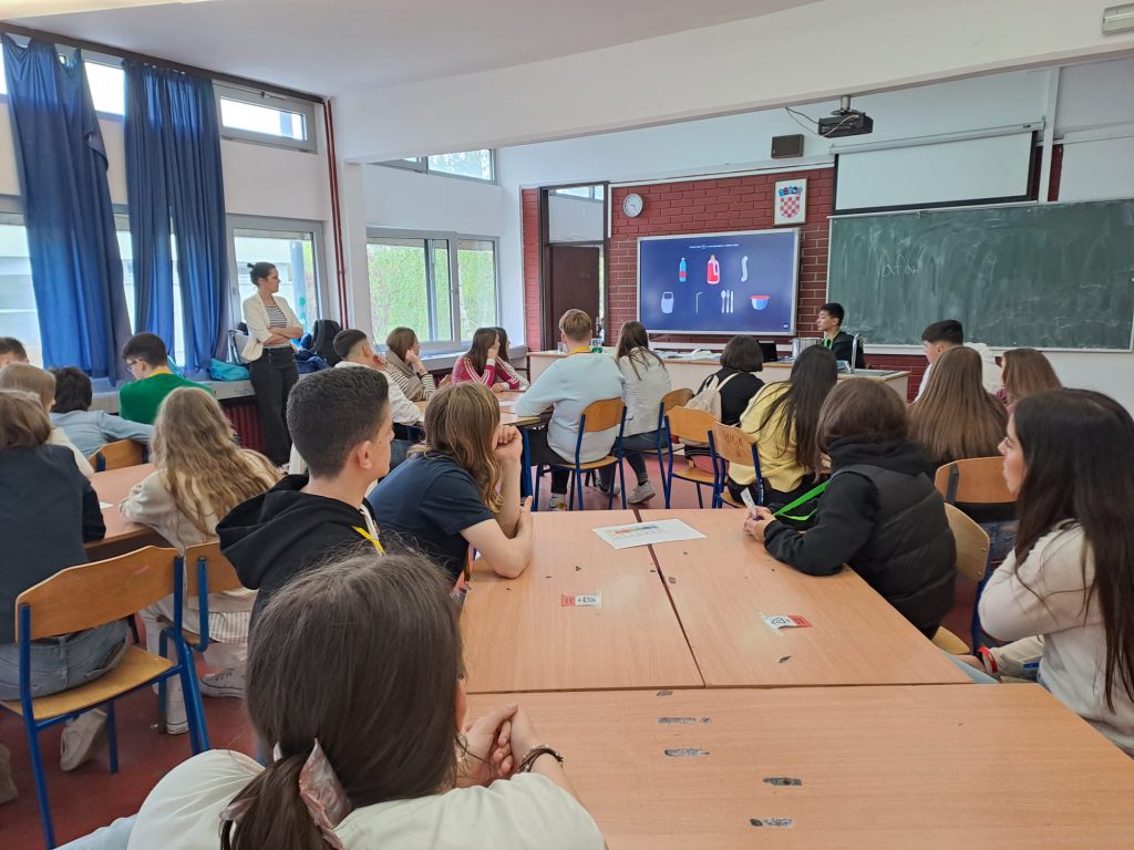 Kroz timske igre učenici su se međusobno upoznali i zabavili. Potom su učenici sudjelovali u radionici “Od mlijeka do plastike” koju je vodila učiteljica Daria Stejskal.