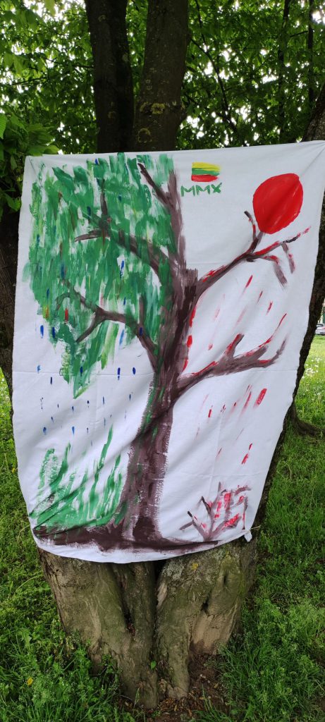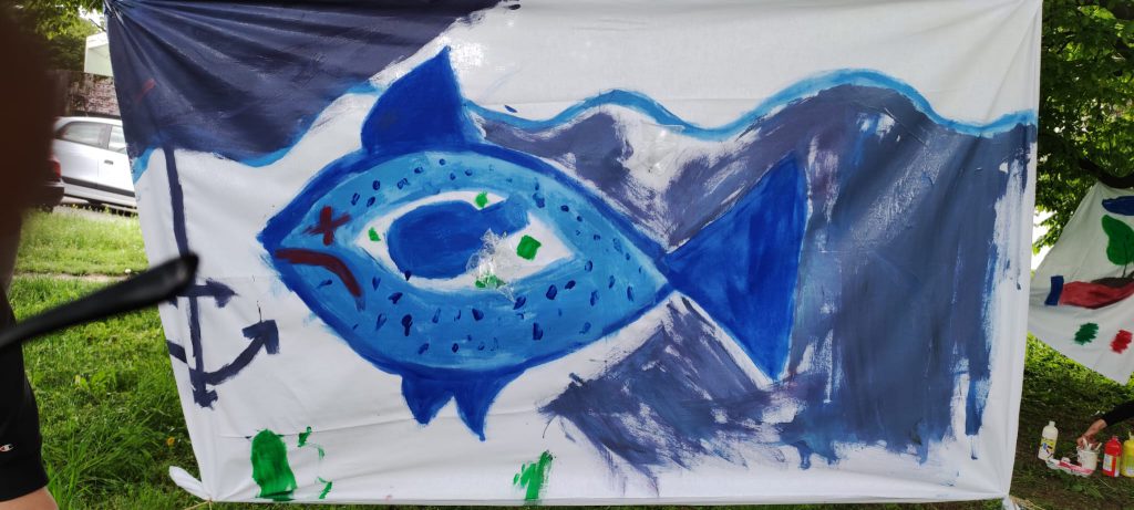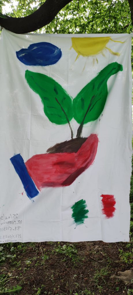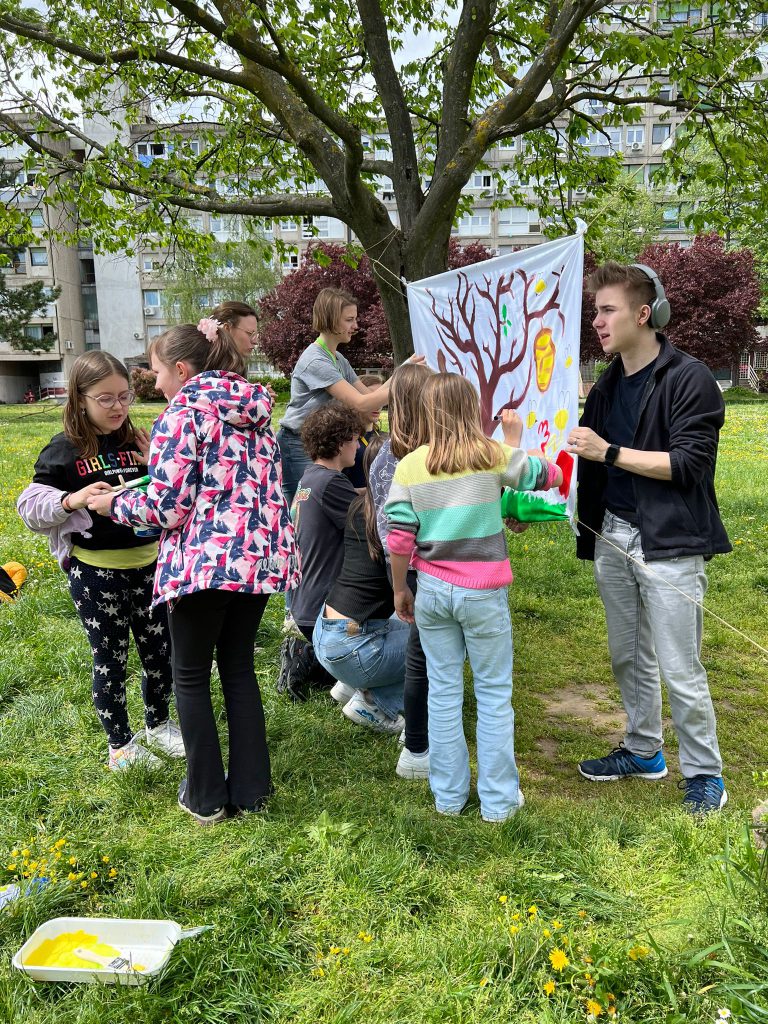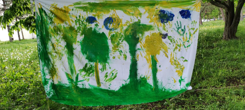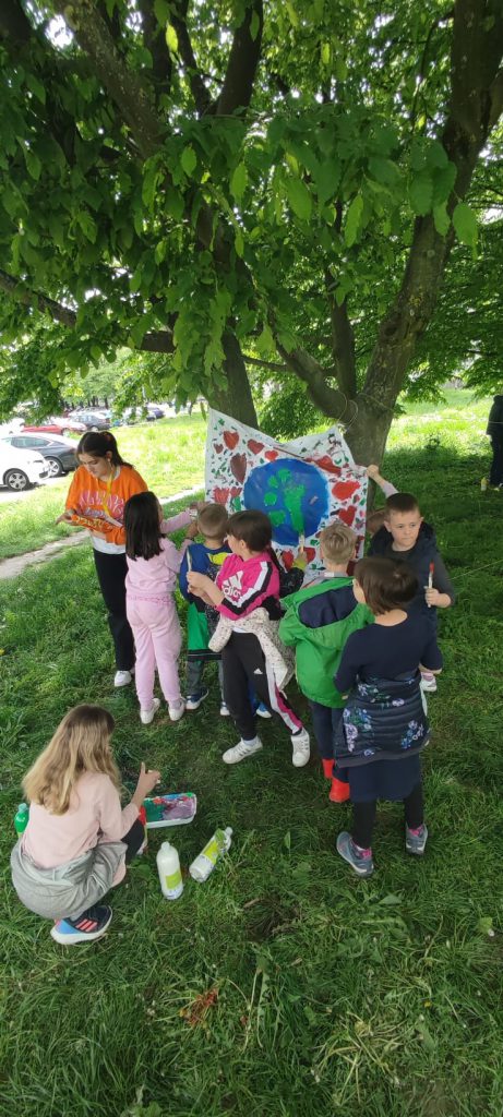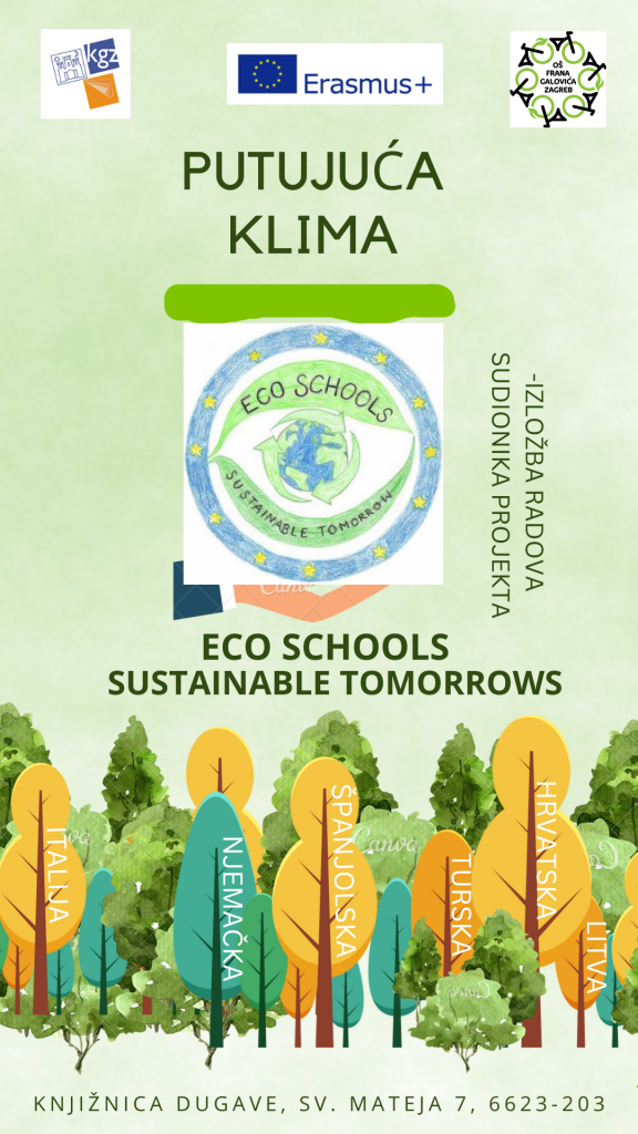 Zvaršna aktivnost bila je likovna radionica na kojoj smo oslikavanjem platna na temu klimatske promjene i globalno zagrijavanje željeli prenijeti poruke o zbivanjima u okolišu. Radovi sudionika izloženi su u Gradskoj knjižnici Dugave. Za tu prigodu knjižničarka Marijana Spevec izradila je plakat i katalog koji će zajedno sa radovima putovati od države do države partnera škola kao izložba pod nazivom “Putujuća klima”.