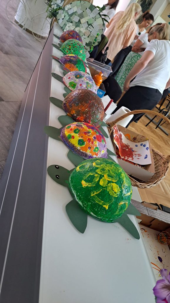Na radionici povodom Međunarodnog dana kornjača (23. svibnja) sudjelovalo je 21 dijete drugih razreda naše škole. Uz likovne umjetnike, likovne pedagoge, edukacijske rehabilitatore, nastavnike, učiteljice Sanju Minarik i Danijelu Gracin oslikavali su različite oblike i formate kornjača.