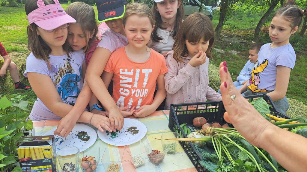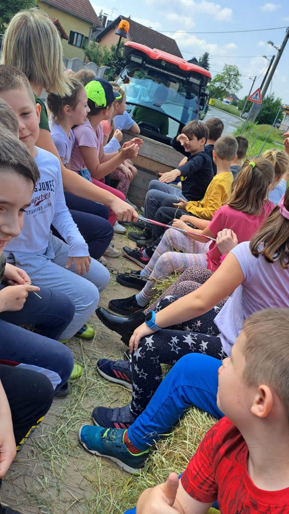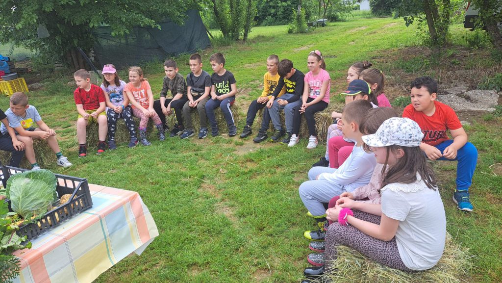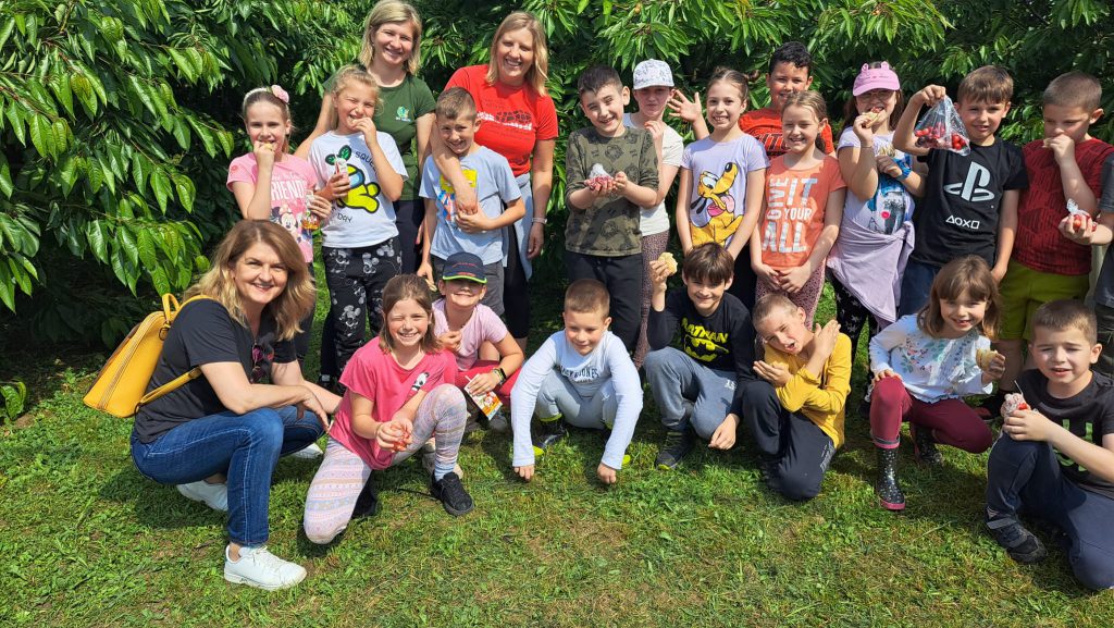 Upoznali smo se s povrtnicama koje rastu krajem proljeća, vadili mrkve i krumpire. U voćnjaku smo brali jako fine trešnje. Da bi Jakuševec doživjeli u cijelosti, traktorom i prikolicom smo se provezli kroz selo, a najveća zanimljivost je upravo to da je danas položen kamen temeljac za našu novu školu u Jakuševcu.