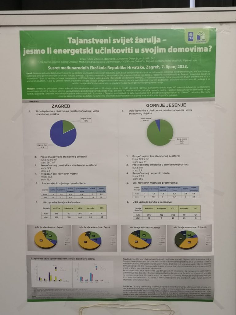 Na svečanosti je sudjelovala i učiteljica Jelena Solak Vodopija, koordinatorica ERASMUS projekta Eco schools sustainable tomorrows u kojem sudjelujemo te se posterom naziva Tajanstveni svijet žarulja – jesmo li energetski učinkoviti u svojim domovima? predstavila učiteljica Dubravka Despoja.
