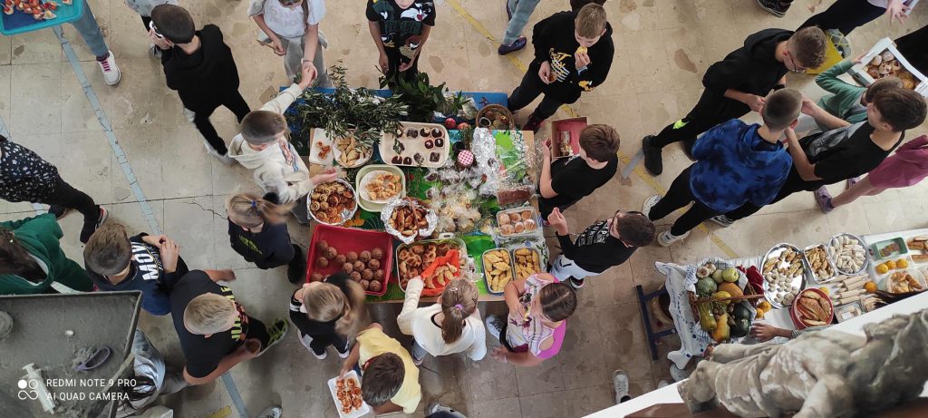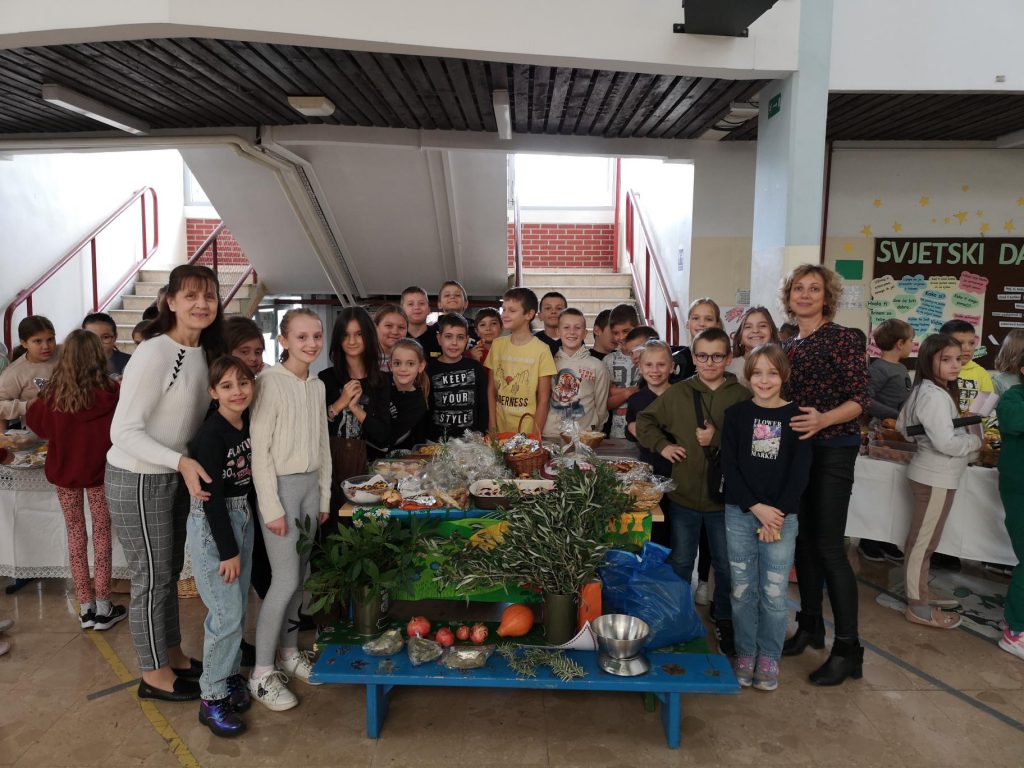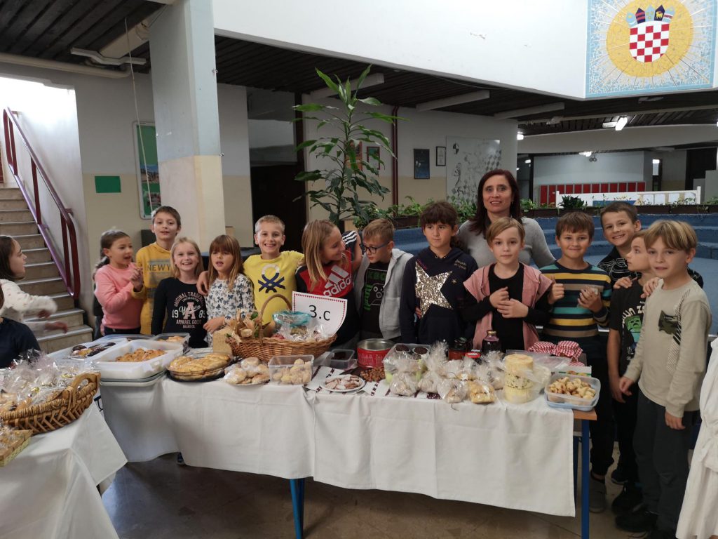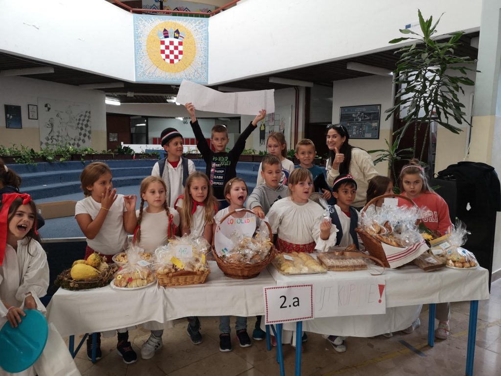 Dani kruha i zahvalnosti za plodove zemlje obilježavaju se svake godine tijekom mjeseca listopada. Tim su povodom, u utorak 17.10., učenici od prvog do četvrtog razreda zajedno sa svojim učiteljicama organizirali prodajnu izložbu pekarskih proizvoda, zimnice i jesenskih plodova. U predvorju naše škole svaki je razred imao svoj stol koji su uredili jesenskim motivima. Brojni posjetitelji i učenici viših razreda kupili su gotovo sve izložene proizvode.