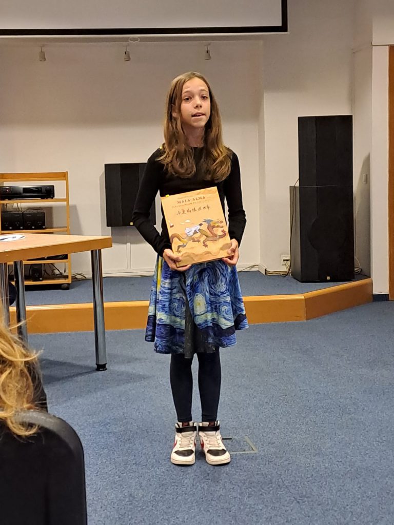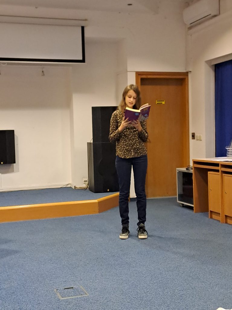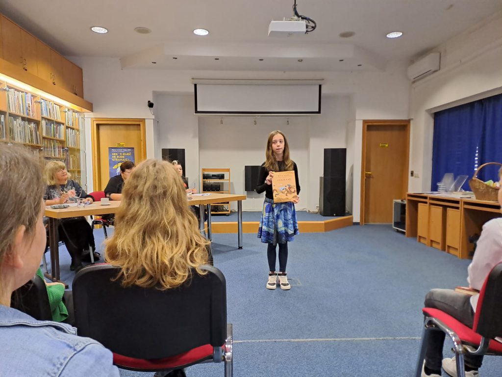 Učenica Maša Banović (4. b) natjecala mlađoj kategoriji za učenike od 3. do 5. razreda čitajući knjigu Milana Dekleve, Mala Alma na velikom putovanju. U jakoj konkurenciji od devet učenika, Maša nažalost nije osvojila jedno od prvih triju mjesta, iako je njena izvedba bila odlična. U školu smo se vratile pune dojmova i s divnom knjigom koja će sigurno biti poticaj na daljnje uživanje u čitanju.