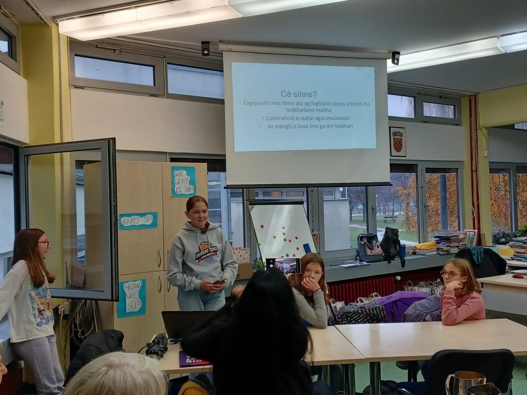 U srijedu, 13. prosinca 2024., u posjet školskoj knjižnici OŠ Frana Galovića došla je grupa školskih knjižničara u sklopu svog Erasmus projekta tijekom kojeg su posjetili nekoliko ustanova važnih za školsko knjižničarstvo u Hrvatskoj. Za razliku od hrvatskih škola, u Irskoj školske knjižničare imaju samo neke škole, i to zahvaljujući programu JCSP Libraries čija je voditeljica Kathleen Moran posjetila i našu školu. Našu školsku knjižnicu posjetili su kako bi vidjeli pozitivne primjere iz prakse te ih prenijeli u svoje knjižnice.
