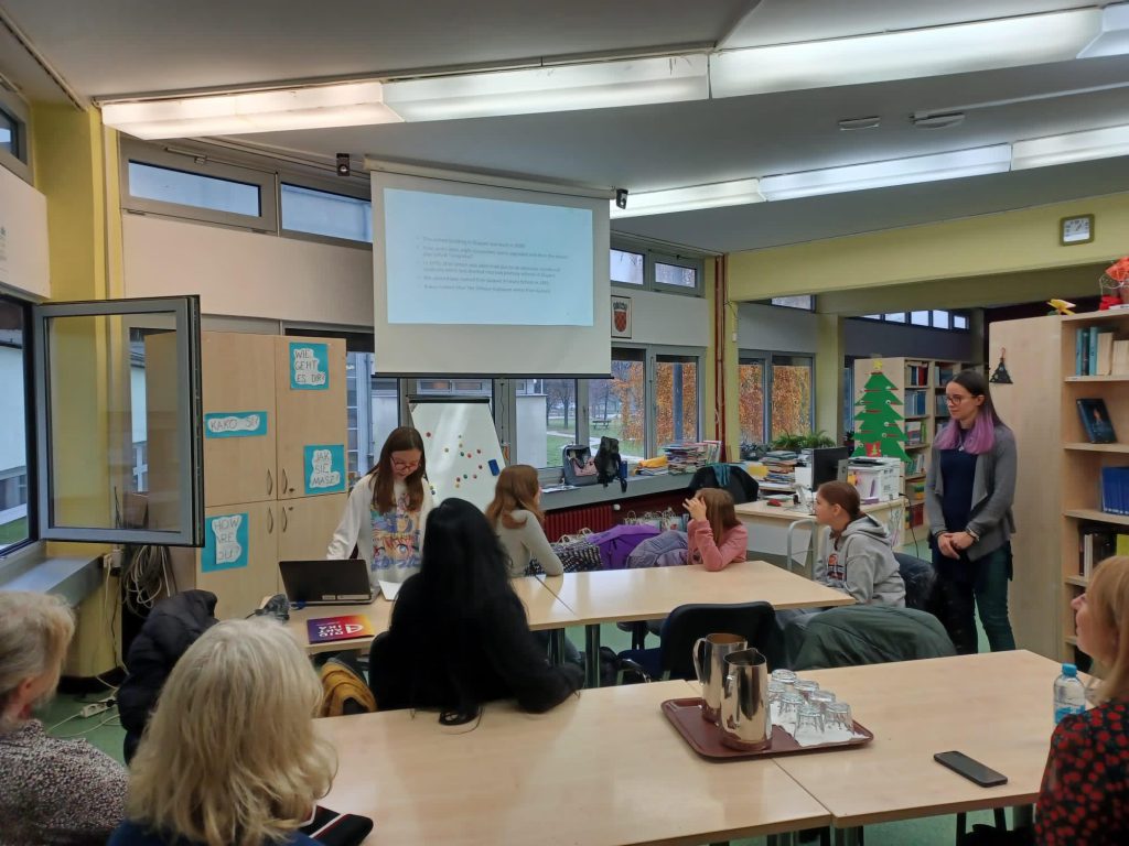 Na početku posjeta kratko predavanje o školi i školskoj knjižnici održale su učenice koje pohađaju izvannastavnu aktivnost Mali knjižničari. Nakon kratkog predavanja na engleskom jeziku knjižničari su učenice pitali o njihovom radu te najboljim i najzanimljivijim poslovima i aktivnostima koje su radile kao Male knjižničarke.