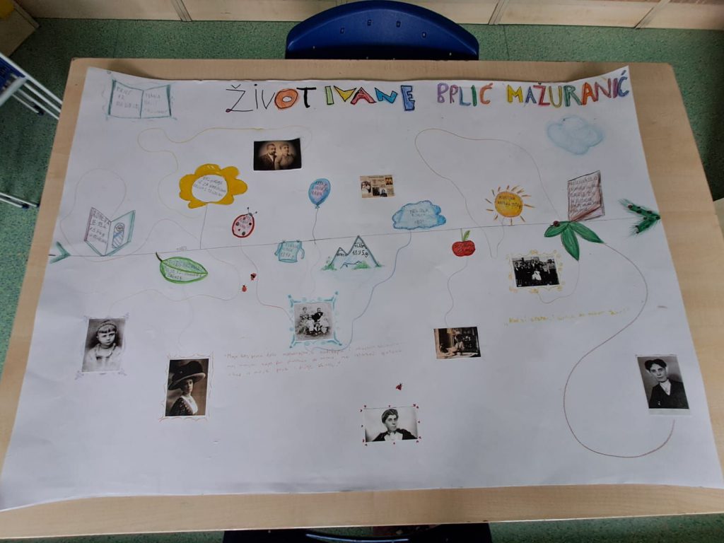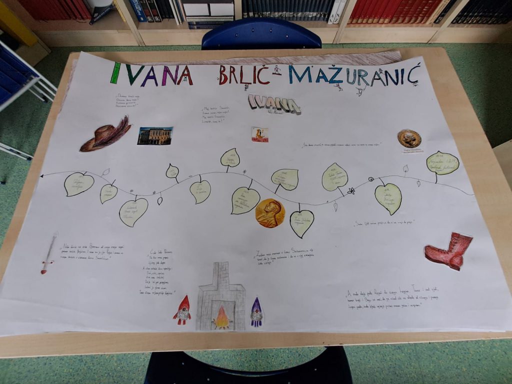 Na plakatu posvećenom njezinom životu učenici su nacrtali važne događaje iz njezine biografije te ih dočarali slikama.