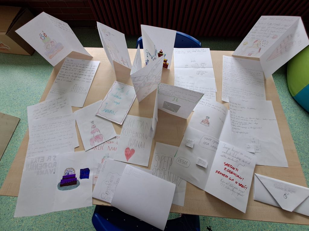 Povodom rođendana Ivane Brlić Mažuranić 18. travnja 2024. učenici naše škole izradili su čestitke i pisma Ivani. Učenici nižih razreda izrađivali su rođendanske čestitke ili pisali kratka pisma Ivani u koja su uključili motive i poruke vezane za njezin rođendan i njezina djela. Kreativnost učenika stvorila je nevjerojatna pisma i čestitke.
