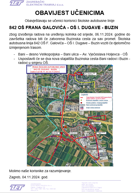 OBAVIJEST ZA UČENIKE PUTNIKE