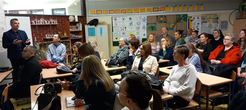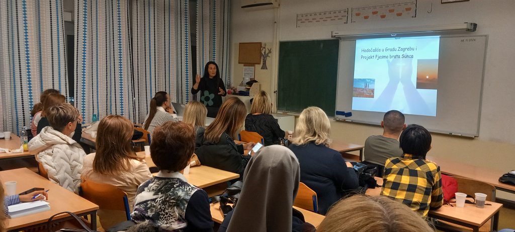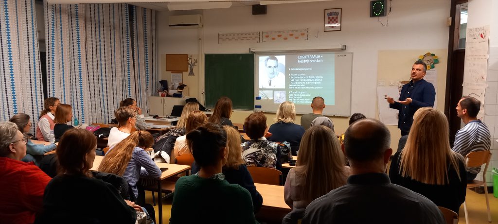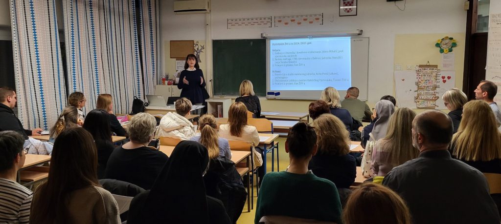 U našoj školi 11. studenoga 2024. g. održano je Županijsko stručno vijeće vjeroučitelja. Ravnateljica škole Silvana Svetličić i voditeljica vijeća Janja Škraba-Stanešić pozdravile su sve prisutne te im zaželjele plodonosan rad. U prvom dijelu vijeća vjeroučitelj i logoterapeut Martin Kajtazi održao je interaktivno predavanje i radionicu na temu Logoterapija u Katoličkom vjeronauku. Nakon pauze je vjeroučiteljica Ines Kresoja predstavila primjere iz prakse Projekt Brata Sunca i hodočašća u Zagrebu koji su vezani za jubileje koji se ove godine obilježavaju u Crkvi. Zadnje predavanje održala je voditeljica vijeća Janja Škraba-Stanešić na temu Stručno usavršavanje i unapređenje nastave – Ususret jubilejima!
