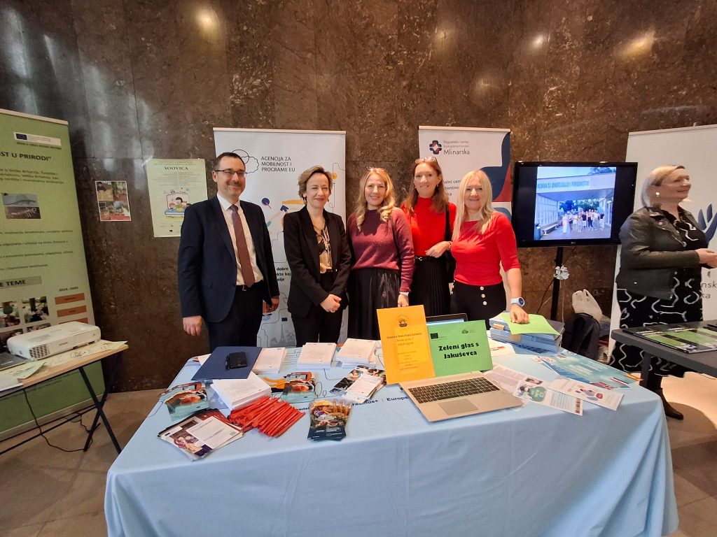 Među predstavljanim inicijativama istaknuo se naš školski Erasmus+ projekt Zeleni glas s Jakuševca. Projekt su na smotri predstavile Dubravka Despoja, Ana Vukušić Mahin, Daria Stejskal i Sanja Minarik, u pratnji ravnateljice Silvane Svetličić.
