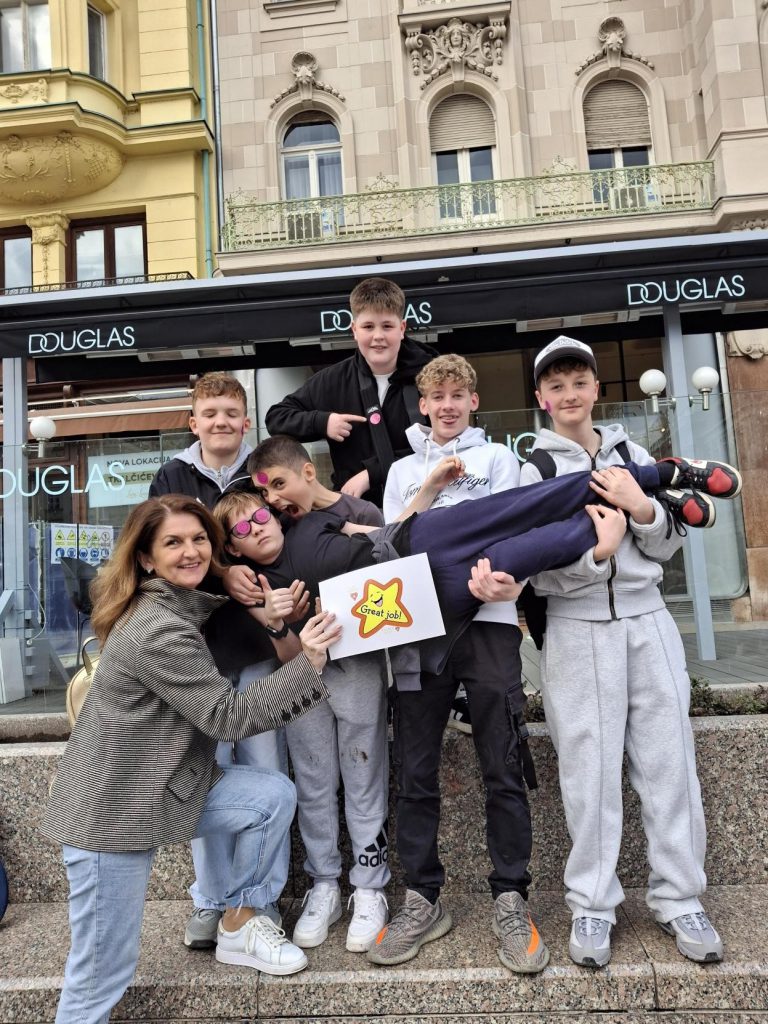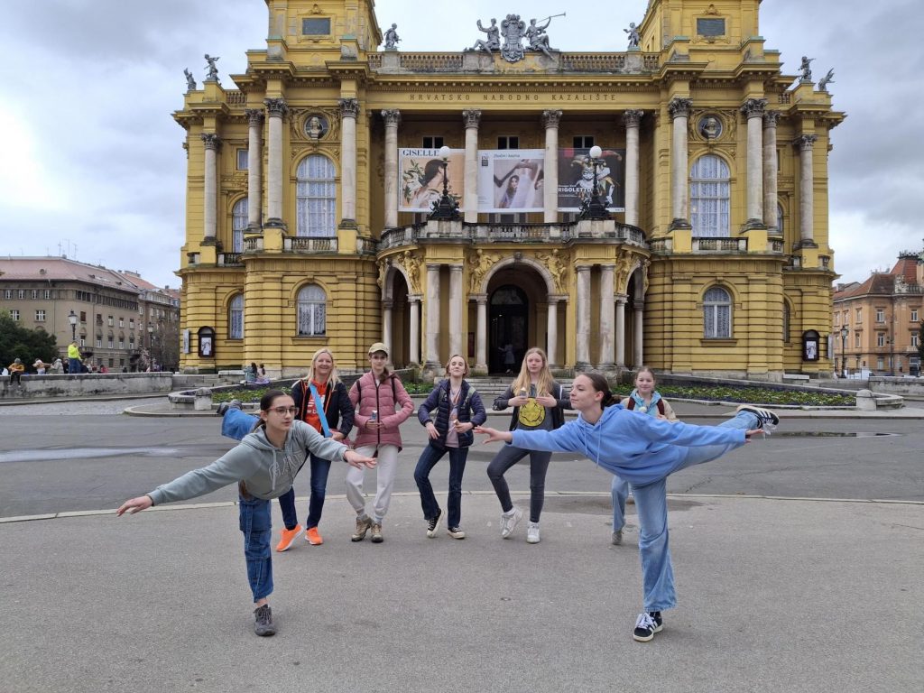I ove smo školske godine nastavili s međunarodnim projektom razmjene učenika te nakon posjeta njemačkoj školi „Lise-Meitner Gymnasium“ u listopadu 2024., organizirali smo domaćinstvo u našoj školi i u našim obiteljima. Ugostili smo devet učenika i dvije učiteljice te im organizirali mnoštvo zanimljivih i poučnih aktivnosti: pohađanje nastave Povijesti, Geografije i Informatike, samostalno istraživanje važnih lokacija u gradu uz City games, posjet Nacionalnom parku Plitvička jezera, igru u Rizvan city-u, posjet Muzeju smijeha i Muzeju iluzija, vođenu turu po Zagrebu, izlet na otoke Krk i Košljun, radionicu izrade grafita uz vodstvo gospodina Krešimira Golubića, zabavu u Amazingi, zajednički domjenak obitelji i gostiju…