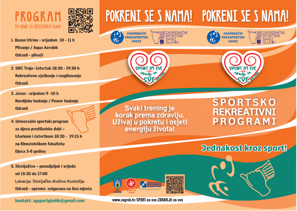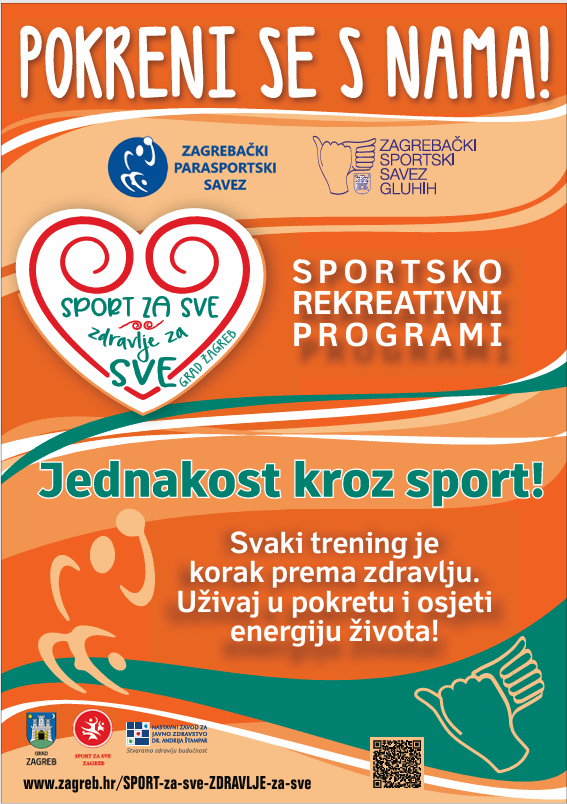 Ovaj plakat predstavlja poziv svim osobama s invaliditetom i s oštećenjem sluha, svih dobi i invaliditeta, na bavljenje nekim oblikom sportske rekreacije namijenjene i prilagođene upravo njima te se potiču priključenju programima s letka u što većem broju.