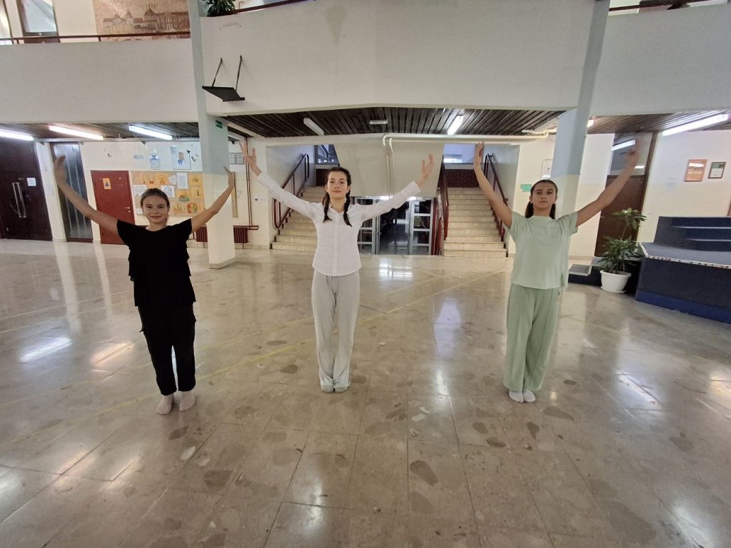 Naše učenice, Irma, Frida i Mara, s voditeljicama Sanjom Minarik i Vanjom Gorički, kreativno su se izrazile plesom na zadanu glazbu. Uživale su u procesu stvaranja, što je i jedan od ciljeva ovog svjetskog projekta.
