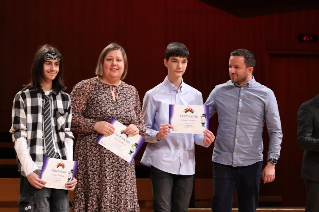zajedno sa svojim mentorima, Majom Jeleković i Mirkom Mojzešom primili priznanja i nagradu na svečanoj dodjeli u Koncertnoj dvorani Vatroslava Lisinskog.