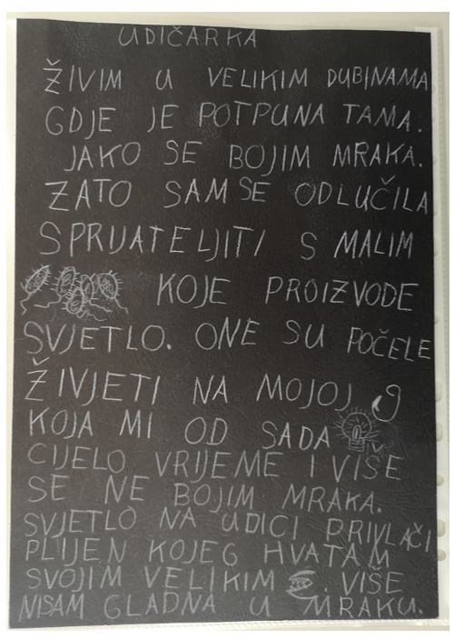 Sliko-priču o ribi udičarki napisala učenica Jelena Kujundžić, 1. A