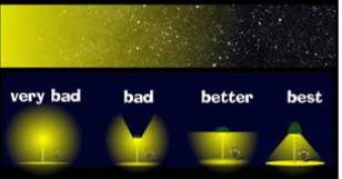 - Svjetlosna kupola (nebo koje svijetli) – svjetlost gradova osvjetljava noćno nebo i smanjuje vidljivost zvijezda