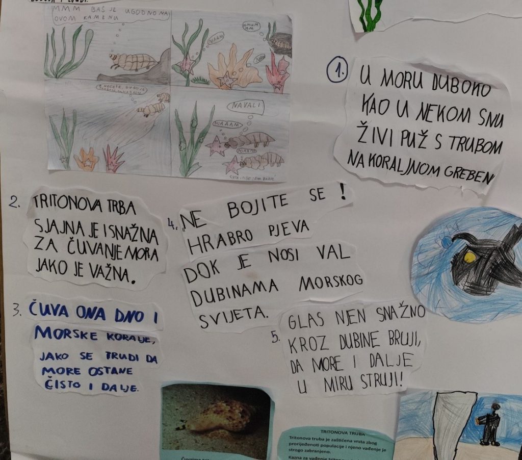 - Napravljeno je istraživanje i prezentacija odabrane ugrožene vrste Jadrana (izrađeni plakati i kartonski akvariji)