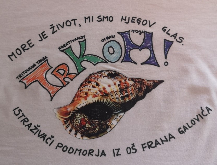 Zadatak našeg tima „TRKOM – čuvari podmorja iz OŠ Frana Galovića“ bio izraditi akvarij i plakat o strogo zaštićenoj ugroženoj vrsti morskog puža TRITONOVA TRUBA (Charonia tritonis). . Ime i moto tima inspirirani su ovim fascinantnim pužem i potrebom da se zaštiti jer je važan za očuvanje ravnoteže ekosustava mora i oceana. (TRiton + Kreativnost + Ocean + Misija = TRKOM)