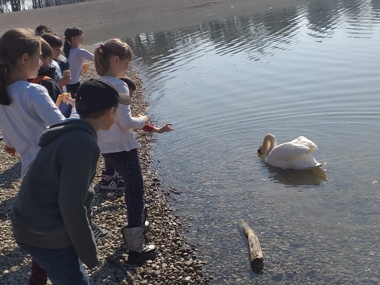Nakon predaha prepustili smo se promatranju i osluškivanju jezera. Sjedeći na oblucima uz obalu Bundeka dojmove smo podijelili uz sendvič i vodu koju smo ponijeli u ruksacima. Naravno da nas je pozdravio i predivan labud.