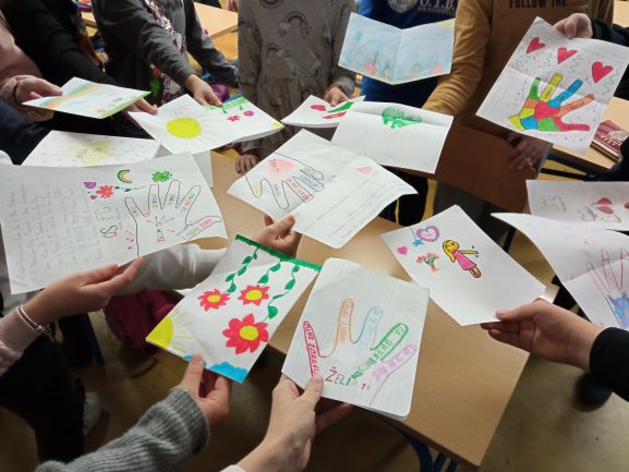 Učenici OŠ Frana Galovića su pisali poruke i pisma podrške učenicima iz potresom pogođenih područja te će ih poslati sa prikupljenim školskim priborom u sklopu humanitarne akcije pod nazivom “Napunimo ruke i srca”.