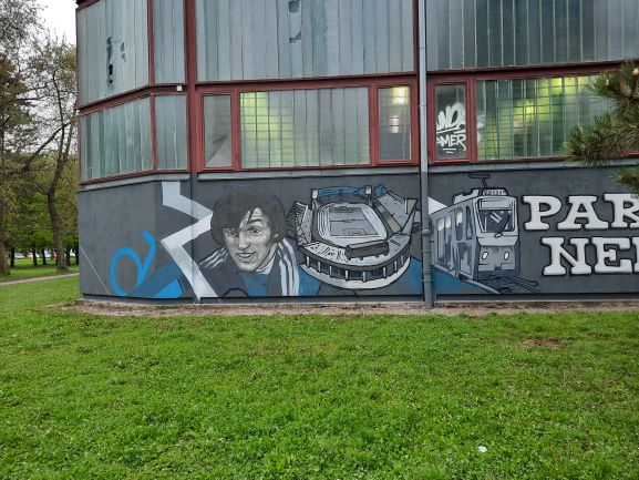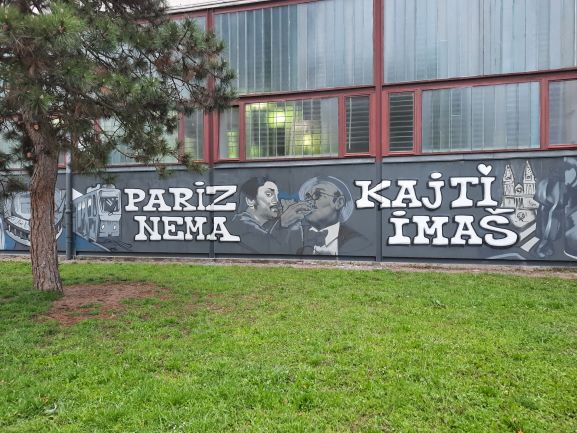 Na muralu se nalaze znamenitosti grada poput: katedrale, stadiona Maksimir, tramvaja, uspinjače i kule Lotršćak.