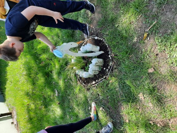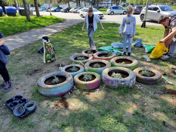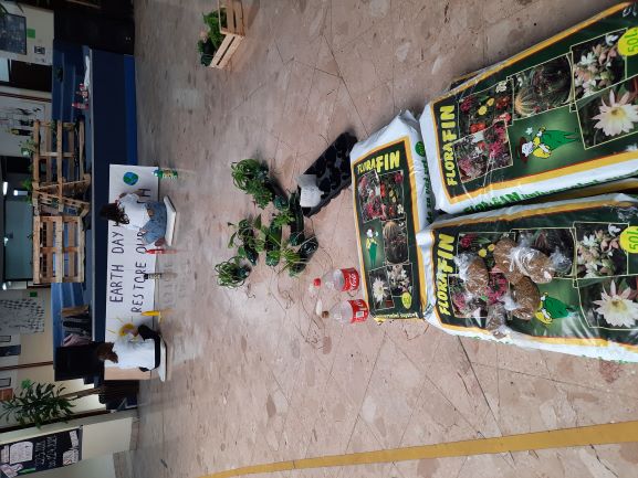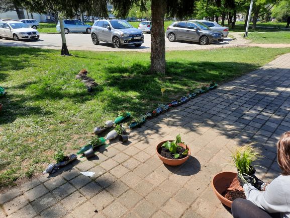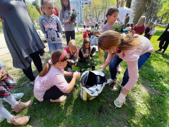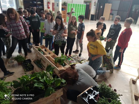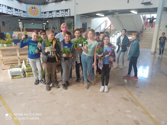 Učenici nižih razreda su sadili cvijeće oko škole i u ekološki napravljene tegle od plastičnih boca koje su zatim smjestili na razna mjesta po školi. U tome su im pomogli učenici koji sudjeluju u Erasmus projektu ” Eco schools sustainable tomorrow”. U pomoć im je došla i planeta Zemlja sa svojim malim bićima.