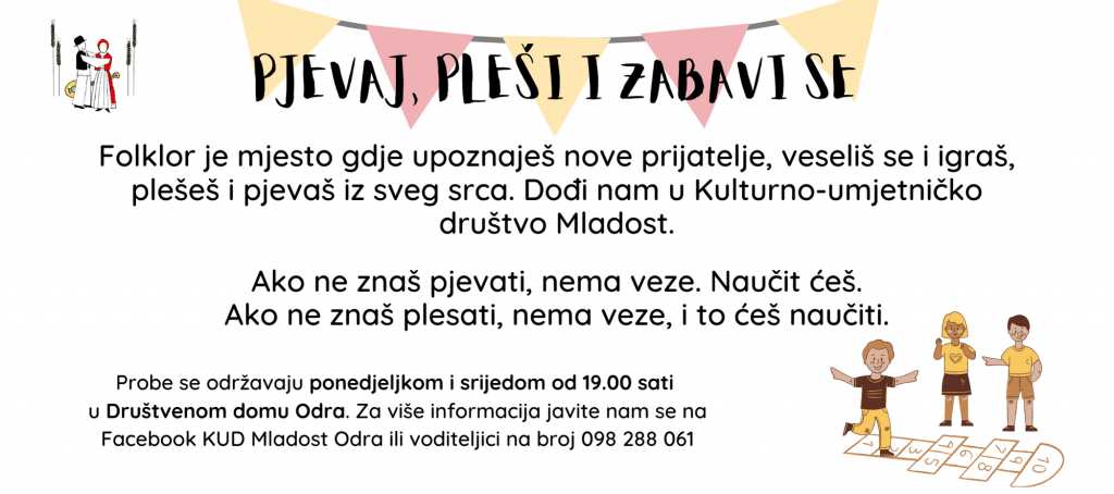 KUD Mladost poziva sve zainteresirane da se pridruže i s njima nauče pjevati i plesati, steknu nova prijateljstva i još mnogo toga.
