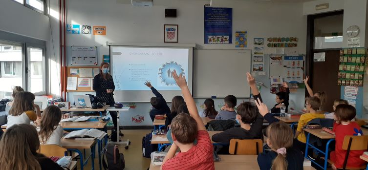 Tako je i 4.b posjetila mama Jelena, koja je liječnica u Infektivnoj bolnici Fran Mihaljević. Obogatila je naša znanja o temi zaraznih bolesti. S njom smo proširili spoznaje o zaraznim bolestima, putevima prijenosa i prevenciji. Osobito nam je naglasila važnost prevencije širenja bolesti, jer bolje je spriječiti, nego liječiti.