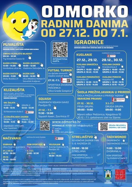 Školski sportski savez Grada Zagreba je tijekom zimskih praznika učenika pripremio program Odmorko Zima 2022.