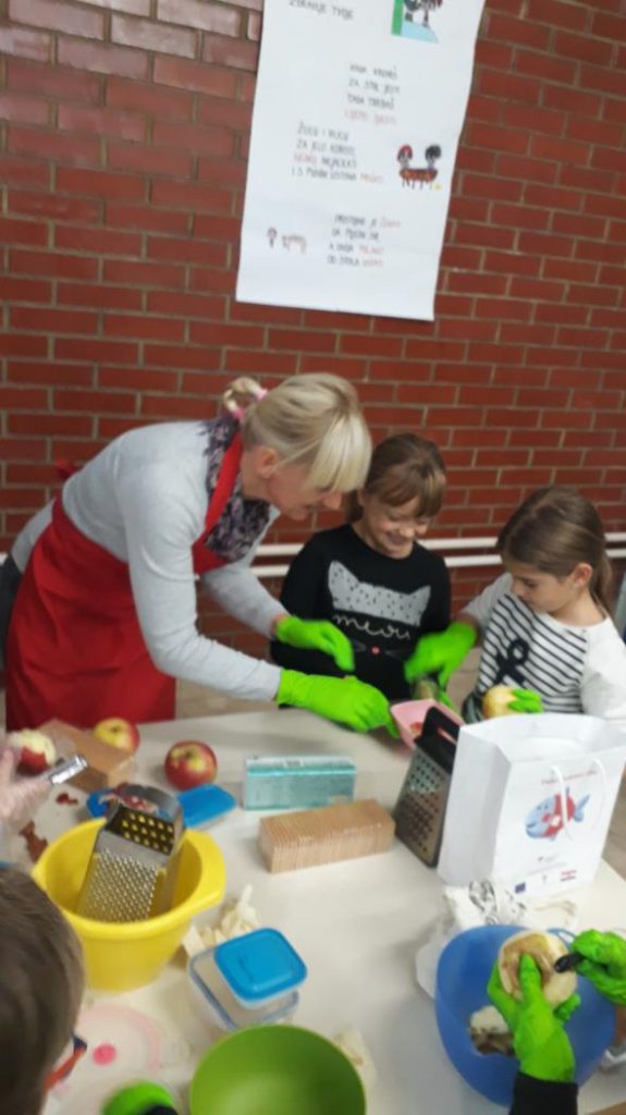 Učenici prvih razreda vrijedno su ribali jabuke i izradili ukusne keks pite od jabuka. Uslijedila je degustacija proizvoda u holu škole. Zahvaljujemo mamama, tatama i bakama na pomoći i prikupljenim materijalima.