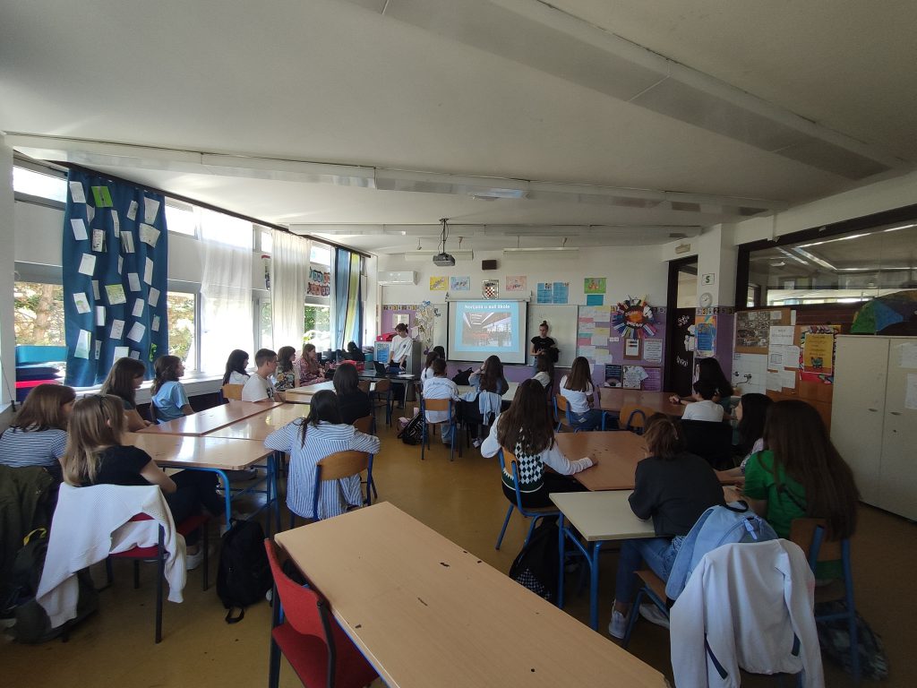 U sklopu profesionalnog usmjeravanja učenika 8. razreda, u četvrtak 19.5. organizirano je predavanje 1. gimnazije koje su držale naše dvije bivše učenice koje su došle u pratnji školske pedagoginje 1. gimnazije.