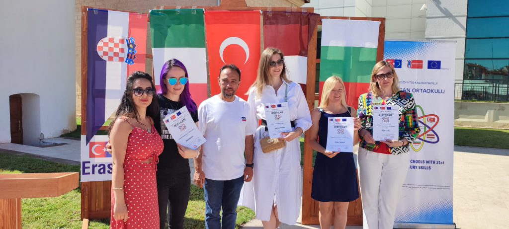 Naše se sudionice projekta Stronger schools with 21st. century schools vraćaju s mobilnosti iz Turske pune predivnih iskustava i dojmova. Domaćini iz Ušaka omogućili su nam upoznavanje tradicijskih običaja u hrani, plesu, pjesmama. Obišli smo i značajne povijesne i prirodne znamenitosti o kojima ćete više saznati u e-knjizi koju pripremamo. U edukacijskom dijelu projekta sudionici su razmijenili primjere prakse iz svojih zemalja u radu i primjeni web 2.0 alata. Ova mobilnost ostat će nam u trajnom sjećanju zbog izuzetne gostoljubivosti domaćina.