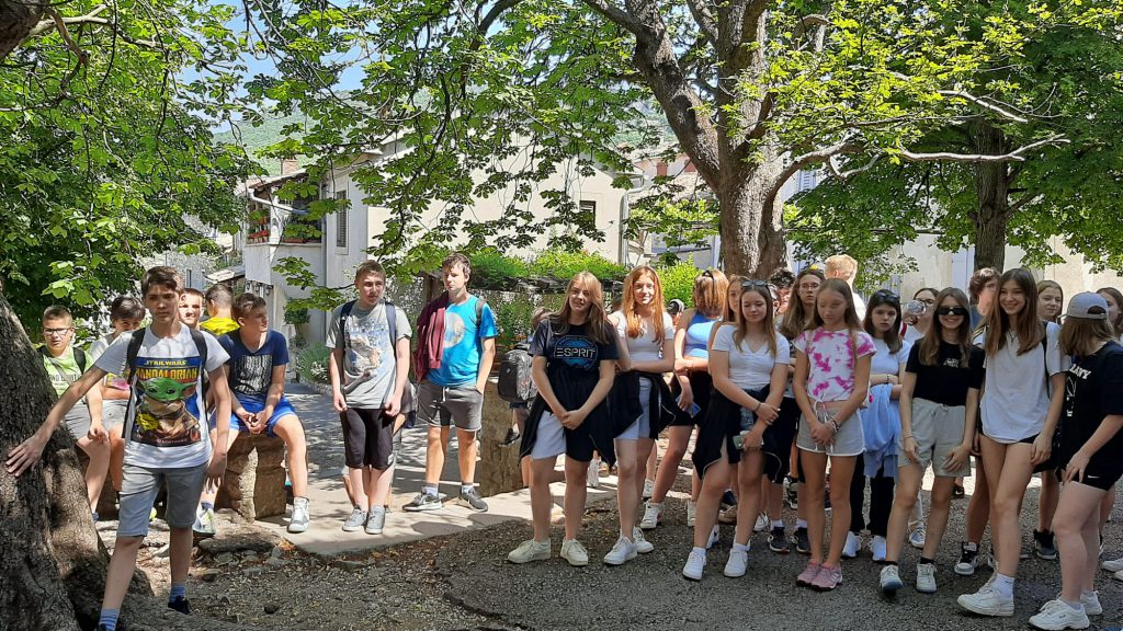 Učenici 7. razreda u pratnji svojih razrednica, Danijele Kućan, Marije Reis, Lane Čorko i Martine Rukavine i profesora Josipa Katića, danas su otputovali na terensku nastavu u Istru. Razgledali su Roč, jedno od središta hrvatskog glagoljaškog tiskarstva, potom su se Alejom glagoljaša zaputili do Huma, “najmanjeg grada na svijetu”, kako mu Istrijani vole tepati, iako se, administrativno gledajući, Hum ne može ubrojiti među gradove, pa time, sa svojih 20-ak stanovnika, ni konkurirati za Guinessovu knjigu rekorda.