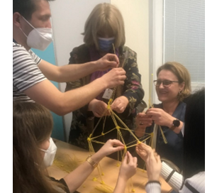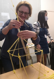 Zadatak je bio od špageta i plastelina konstruirati što višu i čvršću građevinu. Moj tim se odlučio izgraditi Eiffelov toranj i u ovoj igri smo pobijedili jer smo se uspjeli jako brzo dogovoriti i raspodijeliti poslove. Dodatni izazov je bio u tome što su se špagete savijale pod težinom plastelina i pucale.