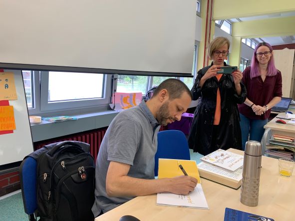 Dana 8.lipnja 2022. učenici 2.b razreda sudjelovali su u književnom susretu s američkim književnikom Lawrence Schimelom.